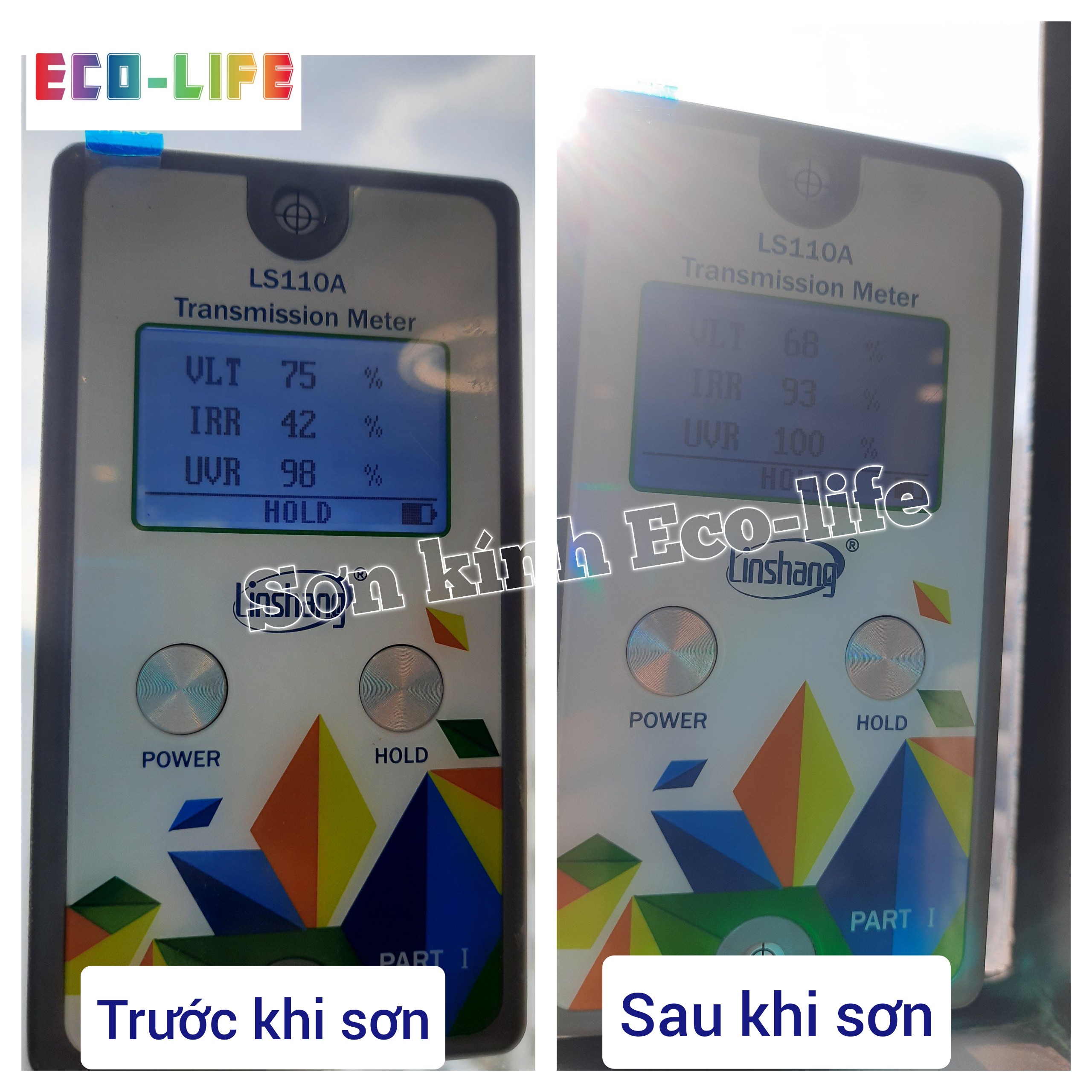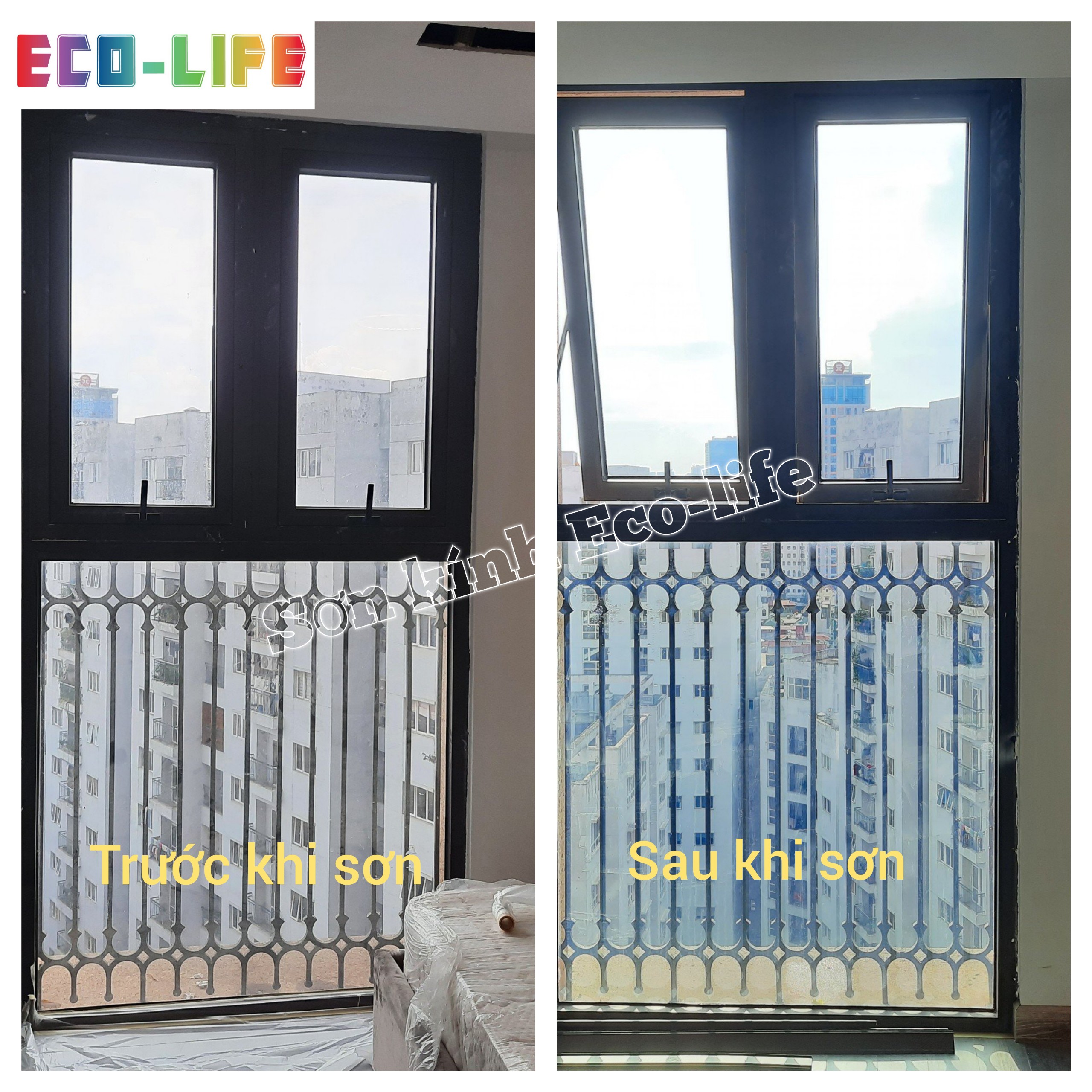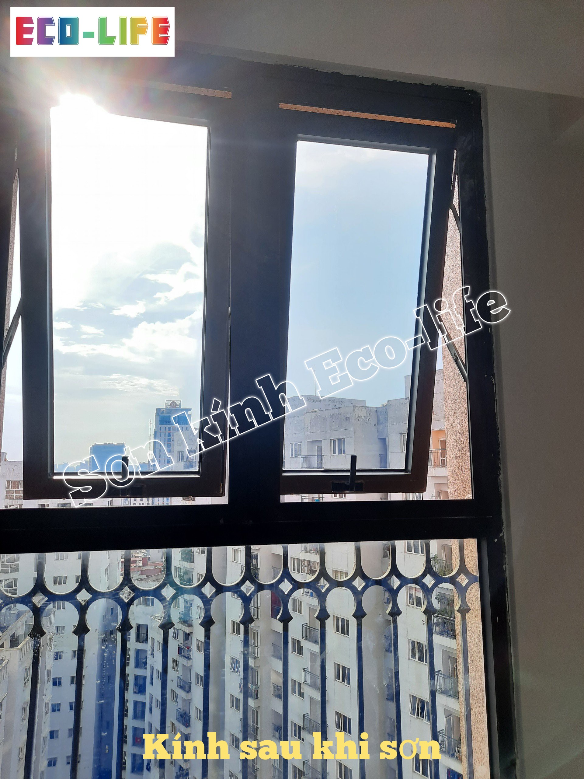 So sánh kính trước và sau khi sơn cách nhiệt Ecolife