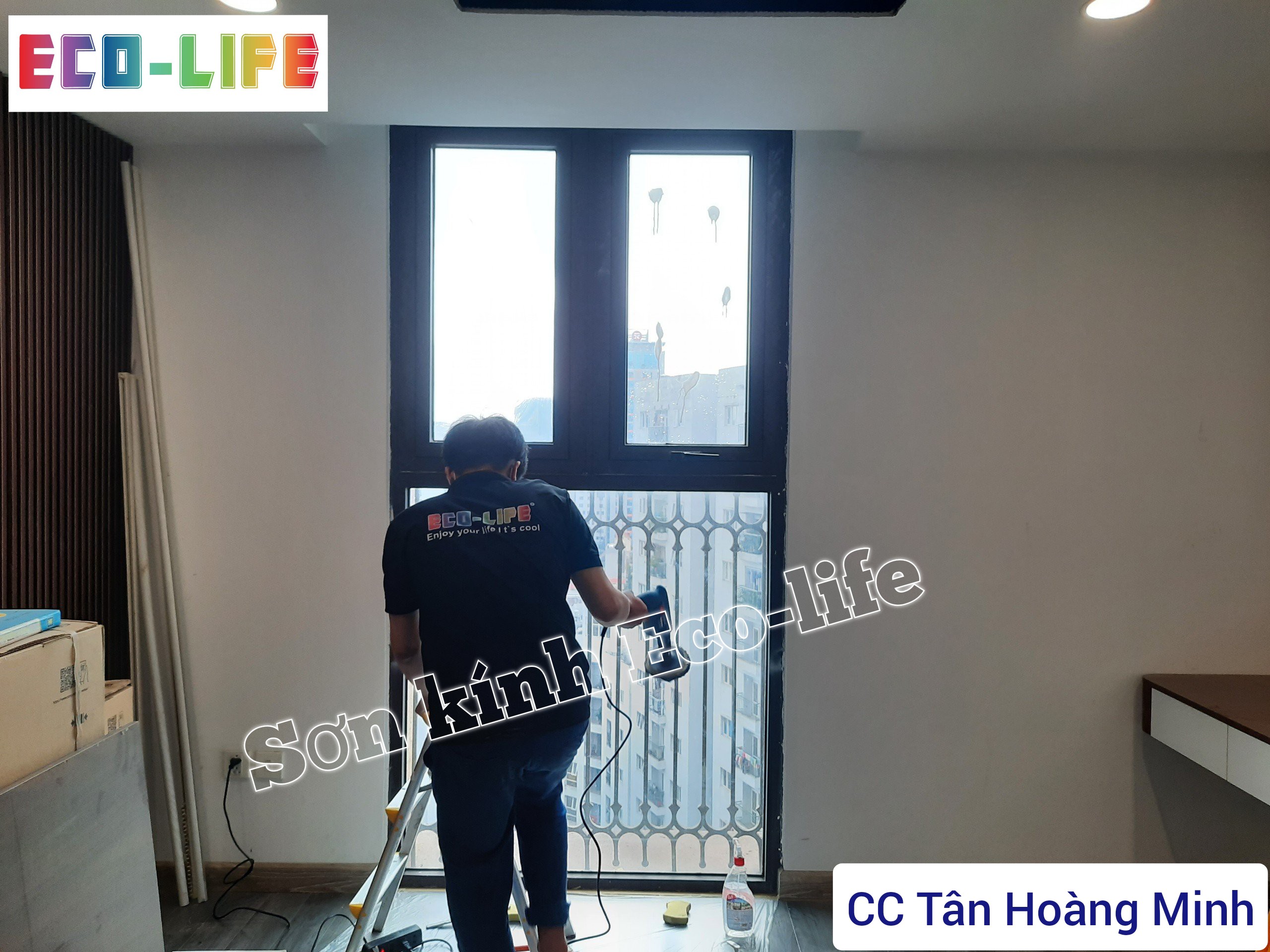 Thi công sơn kính cách nhiệt Ecolife tại CC Tân Hoàng Minh, Hoàng Cầu